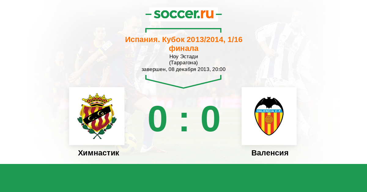 Протокол матча Химнастик против Валенсия