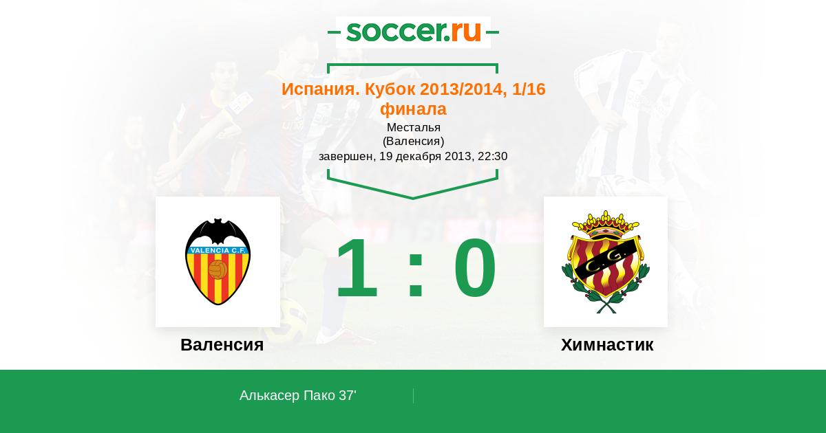 Протокол матча Валенсия против Химнастик