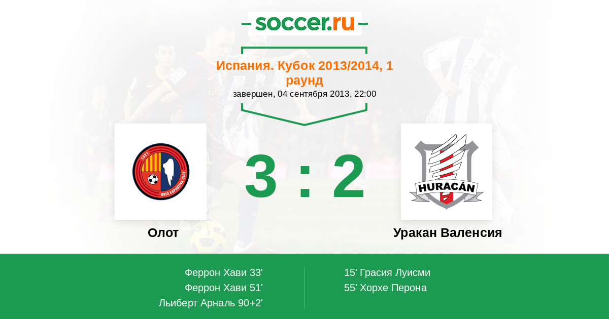 Протокол матча Олот против Уракан Валенсия