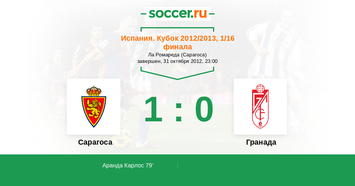 Протокол матча Сарагоса против Гранада