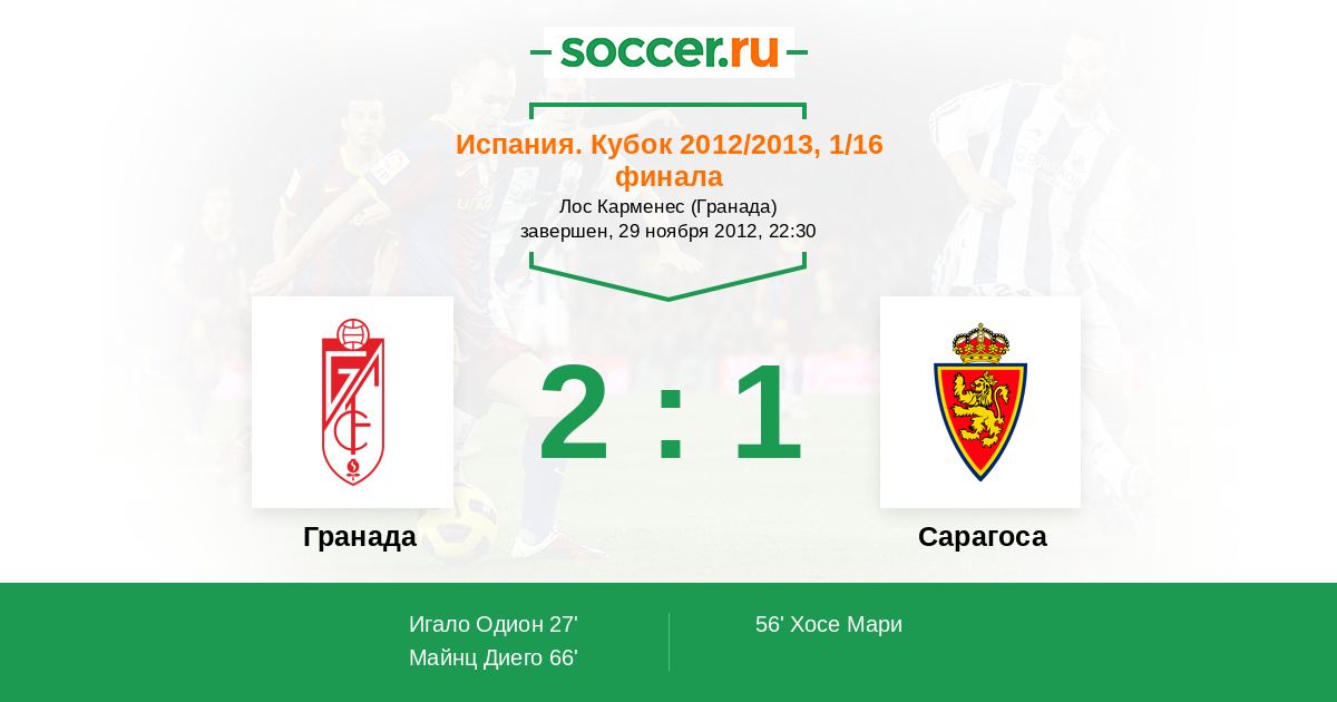 Протокол матча Гранада против Сарагоса
