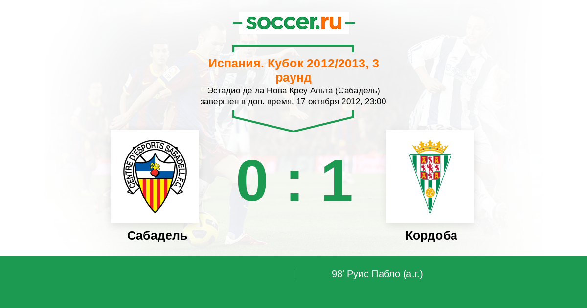 98' (0:1) Автогол Руис Пабло