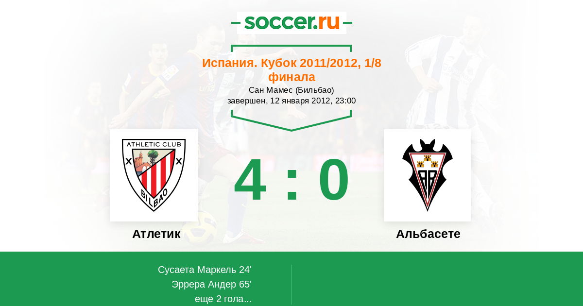 Протокол матча Атлетик против Альбасете