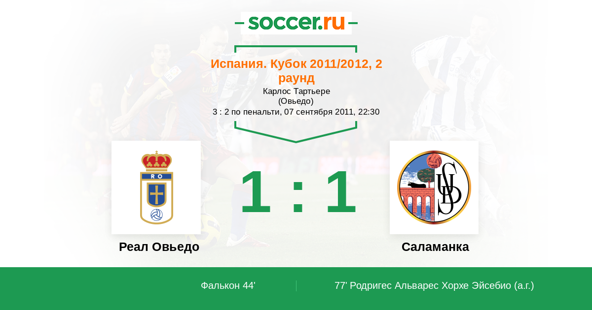 77' (1:1) Автогол Родригес Альварес Хорхе Эйсебио