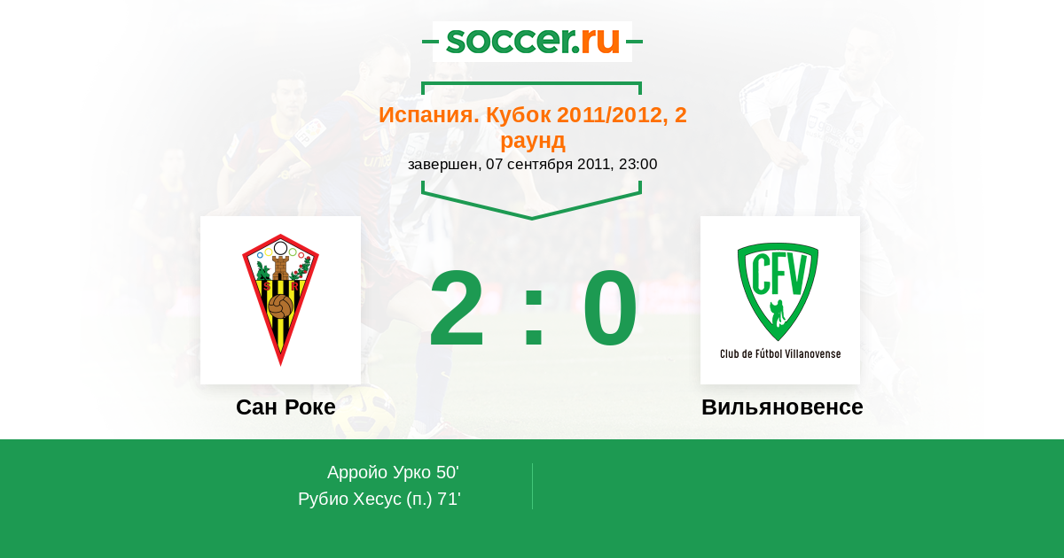Протокол матча Сан Роке против Вильяновенсе