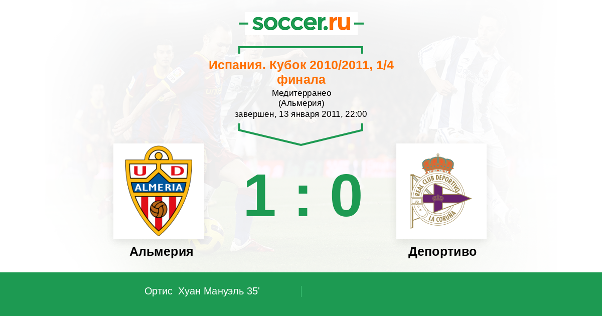Протокол матча Альмерия против Депортиво