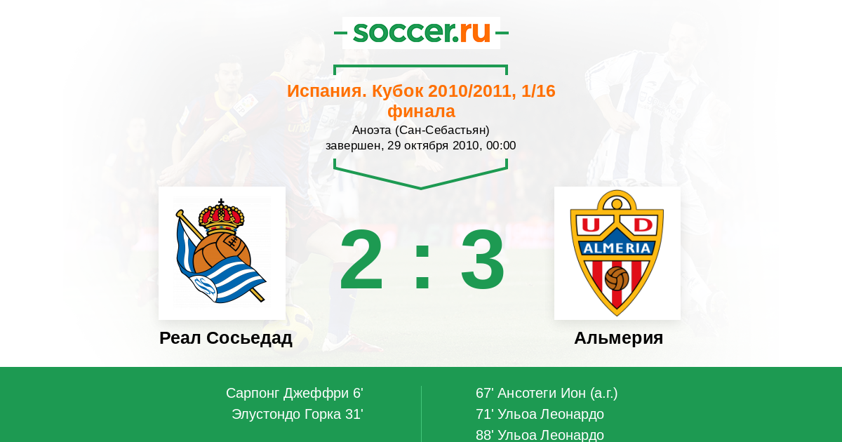 Протокол матча Реал Сосьедад против Альмерия