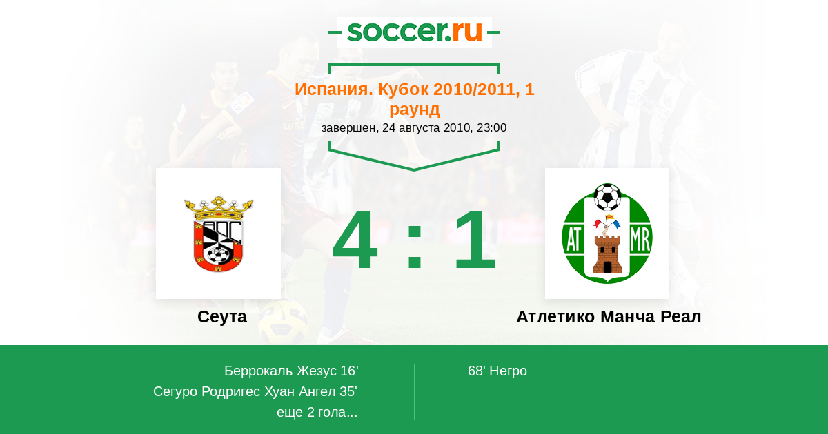 Протокол матча Сеута против Атлетико Манча Реал