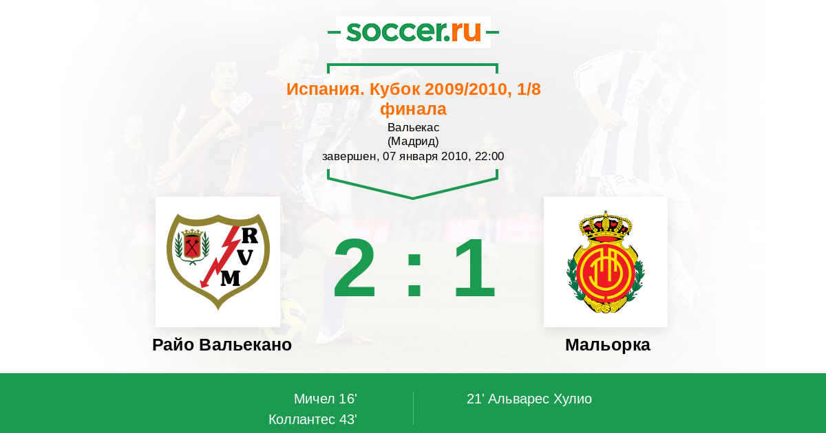 Протокол матча Райо Вальекано против Мальорка