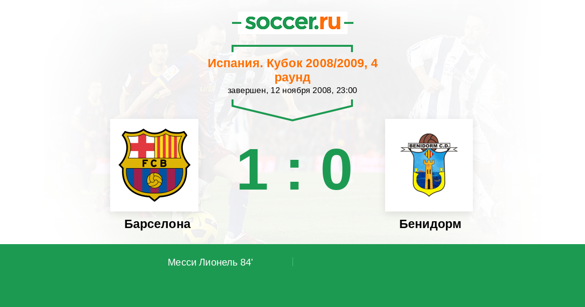 Протокол матча Барселона против Бенидорм