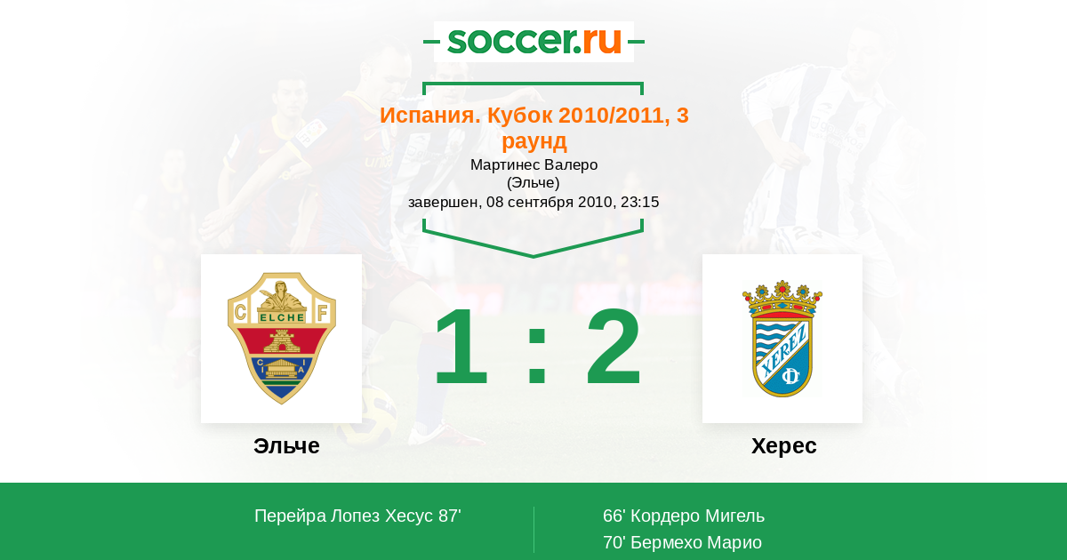 Протокол матча Эльче против Херес