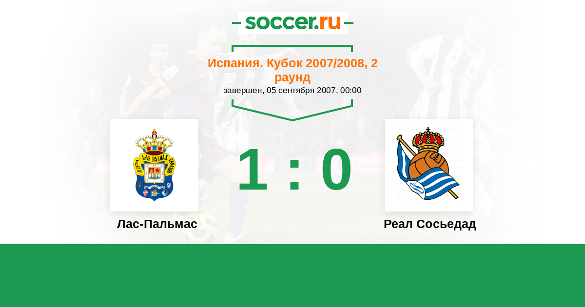 Испания. Сегунда 15.09.2007 Лас-Пальмас Логотип футбольный клуб Лас-Пальмас 2:3 Логотип футбольный клуб Реал Сосьедад (Сан-Себастьян) Реал Сосьедад
