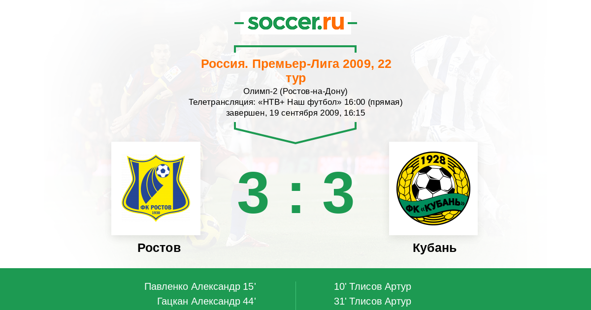 Протокол матча Ростов против Кубань