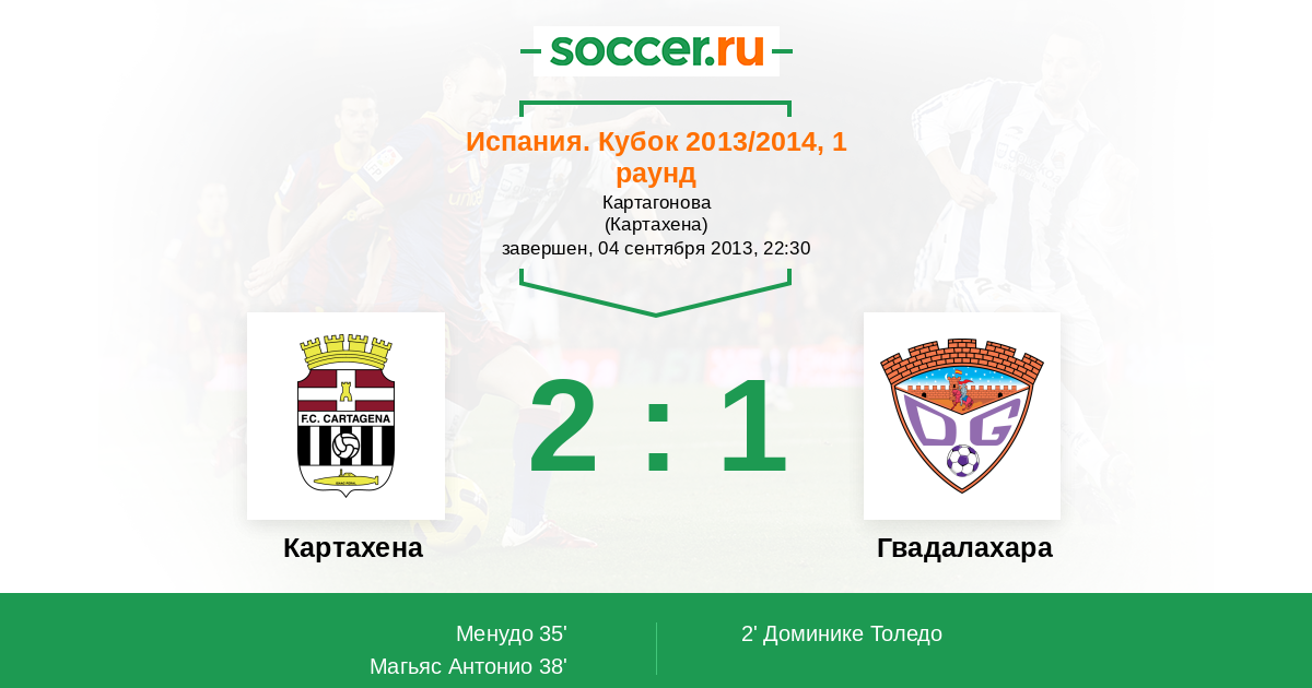 Протокол матча Картахена против Гвадалахара