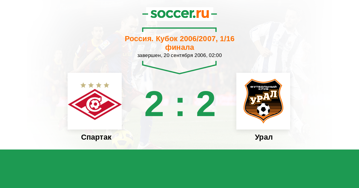 Россия. Кубок 02.07.2006 Урал Логотип футбольный клуб Урал (Екатеринбург) 0:1 Логотип футбольный клуб Спартак (Москва) Спартак