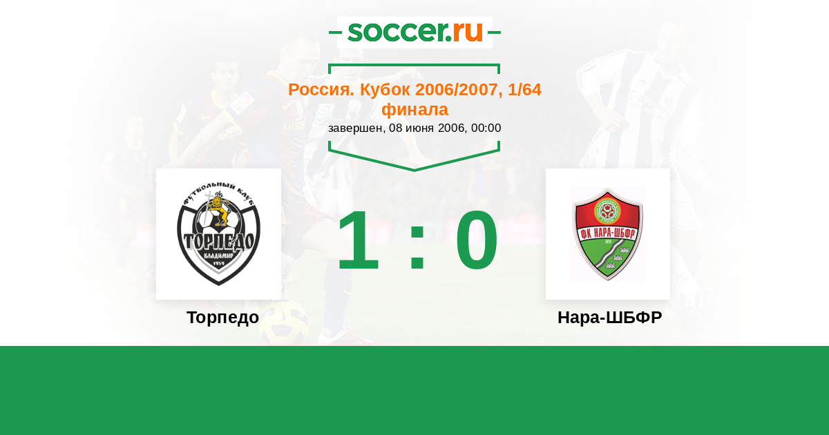 Россия. Кубок 19.05.2007 Нара-ШБФР Логотип футбольный клуб Нара-ШБФР (Наро-Фоминск) 1:1 (3:5) Логотип футбольный клуб Торпедо (Владимир) Торпедо