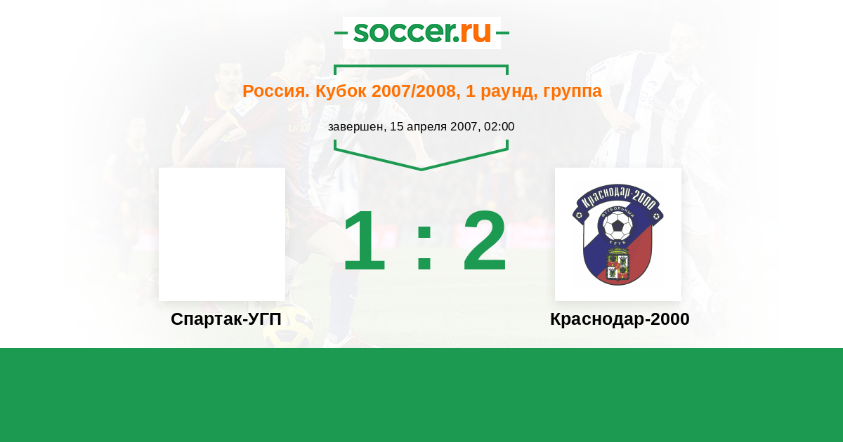 Россия. Вторая лига. Группа 1 12.09.2010 Батайск-2007 Логотип футбольный клуб Батайск-2007 0:3 Логотип футбольный клуб Краснодар-2000 Краснодар-2000
