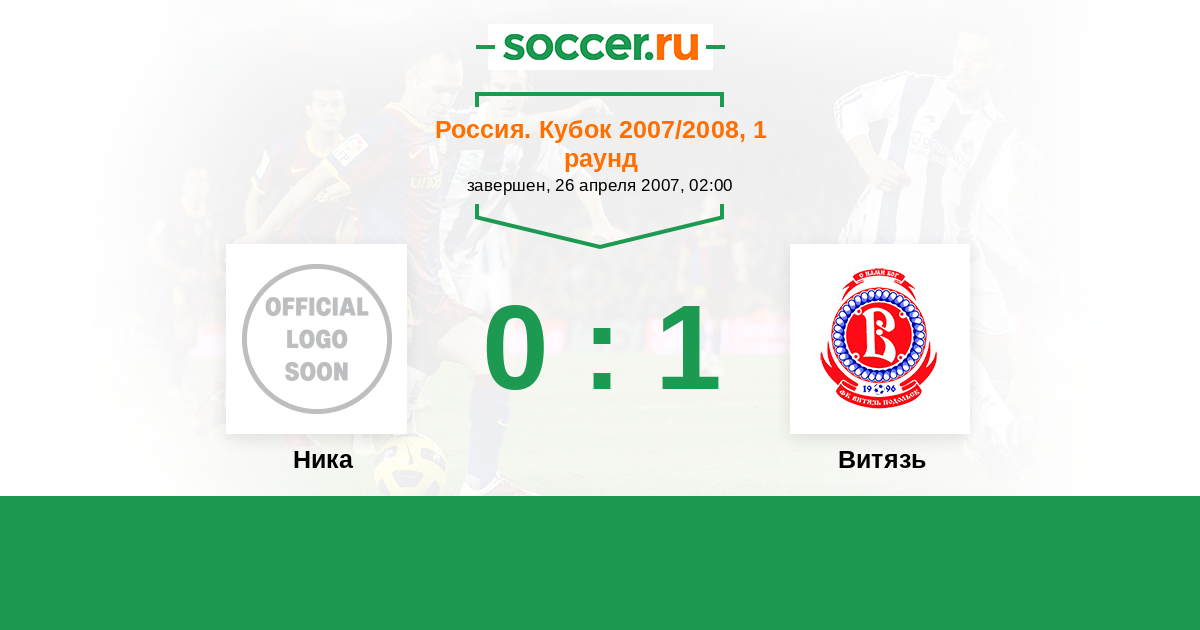 Россия. Вторая лига. Группа 3 06.09.2010 Ника Логотип футбольный клуб Ника (Москва) 0:4 Логотип футбольный клуб Витязь (Подольск) Витязь