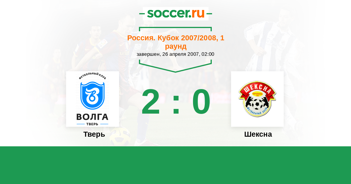 Россия. Вторая лига. Группа 2 18.07.2009 Шексна Логотип футбольный клуб Шексна (Череповец) 3:0 Логотип футбольный клуб Тверь Тверь