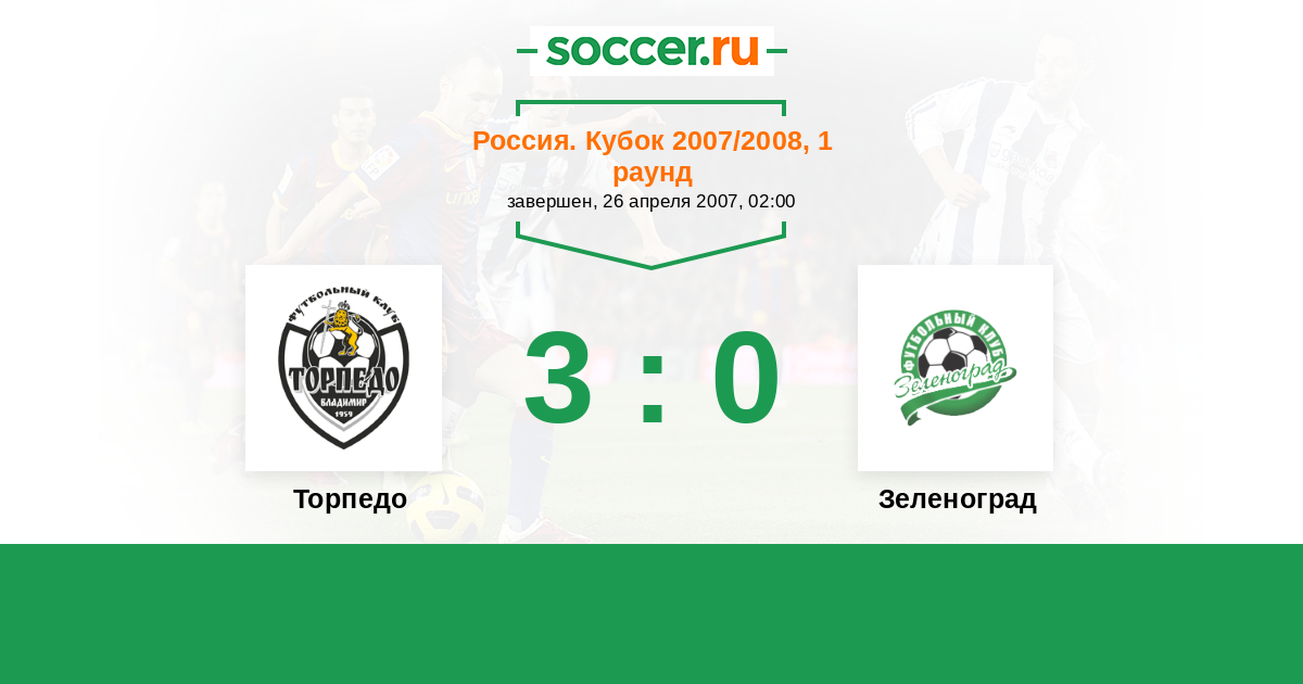 Россия. Вторая лига. Группа 2 24.08.2009 Зеленоград Логотип футбольный клуб Зеленоград (Москва) 1:2 Логотип футбольный клуб Торпедо (Владимир) Торпедо