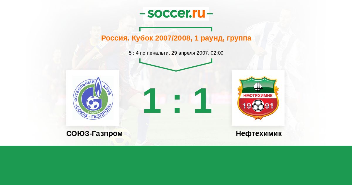 Россия. Вторая лига. Группа 4 08.08.2009 СОЮЗ-Газпром Логотип футбольный клуб СОЮЗ-Газпром (Ижевск) 5:1 Логотип футбольный клуб Нефтехимик (Нижнекамск) Нефтехимик