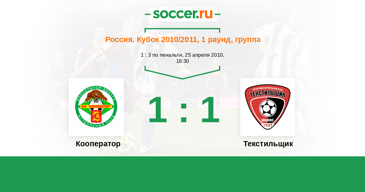 История матча Кооператор против Текстильщик
