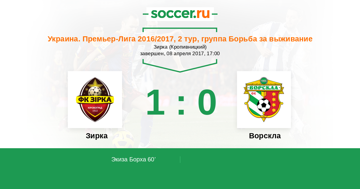 Протокол матча Зирка против Ворскла