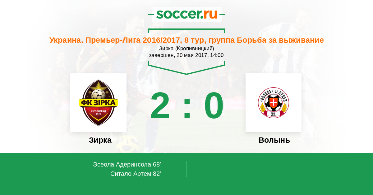 Протокол матча Зирка против Волынь