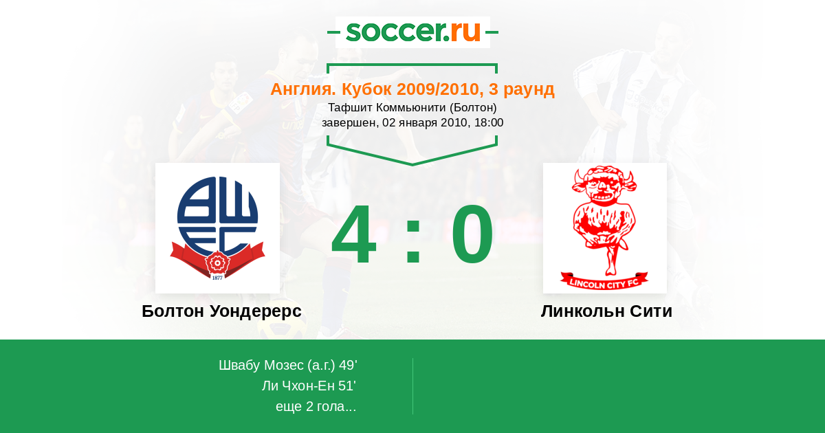 Протокол матча Болтон Уондерерс против Линкольн Сити
