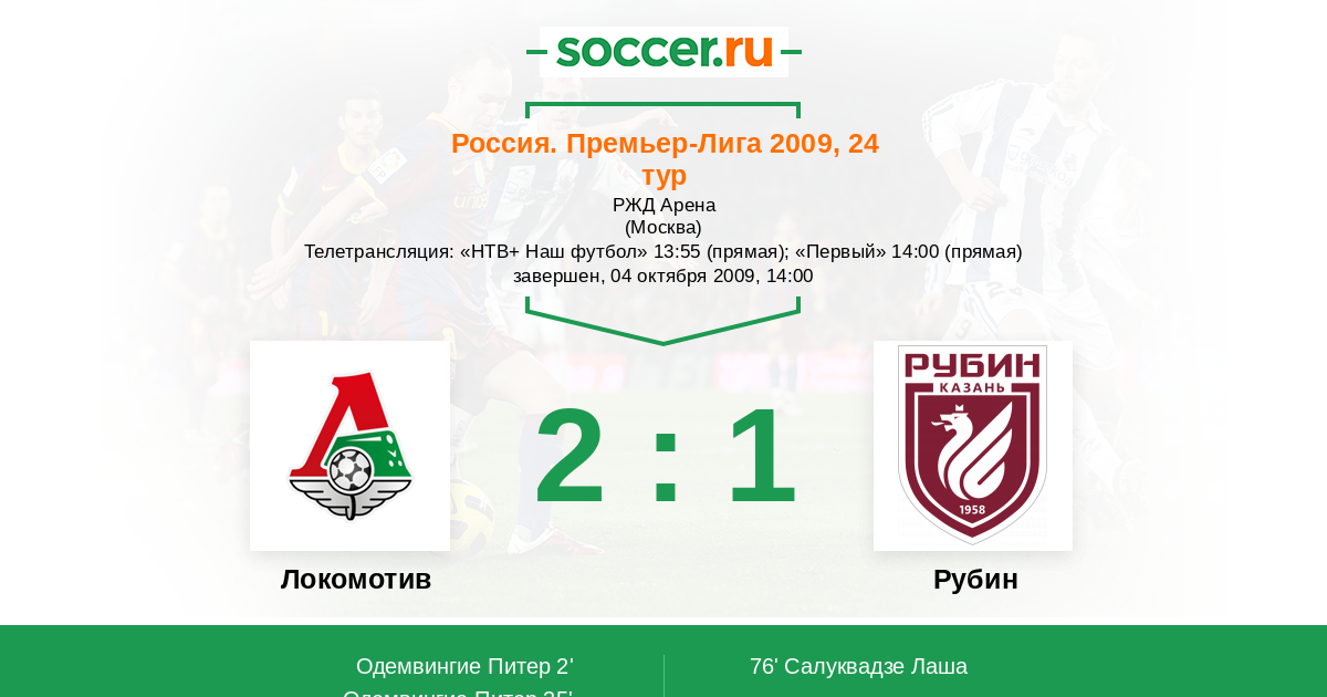 Протокол матча Локомотив против Рубин