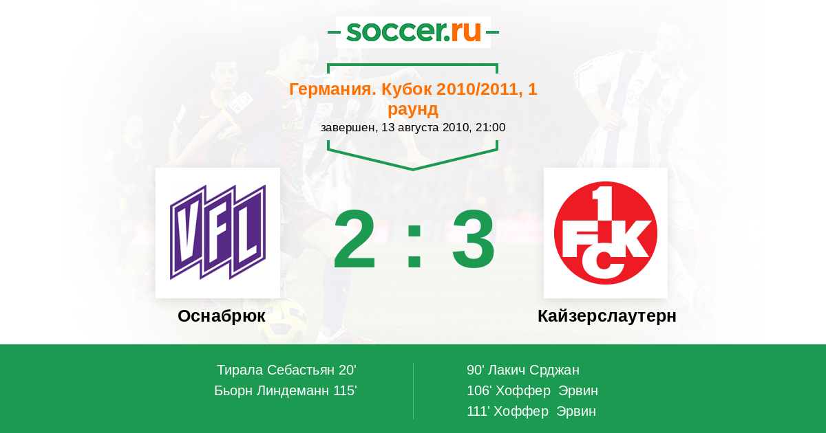 Протокол матча Оснабрюк против Кайзерслаутерн