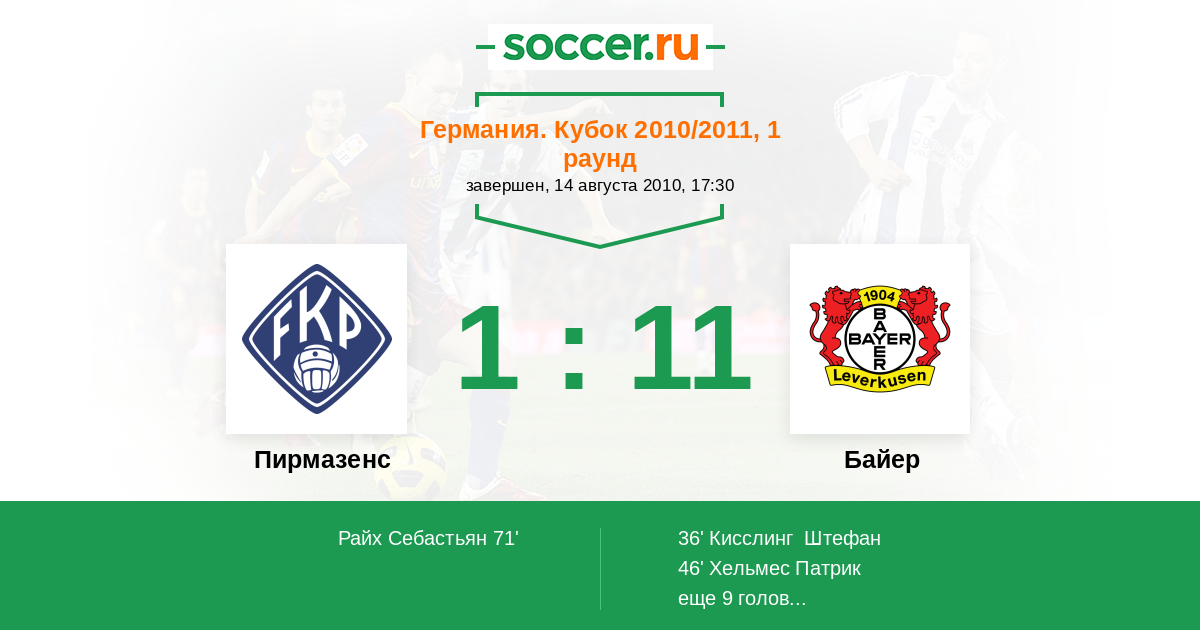 Протокол матча Пирмазенс против Байер