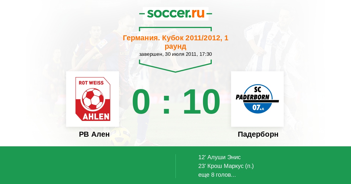Протокол матча РВ Ален против Падерборн