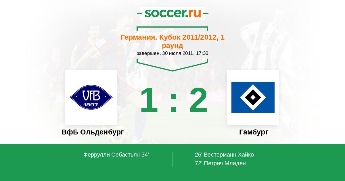 Протокол матча ВфБ Ольденбург против Гамбург