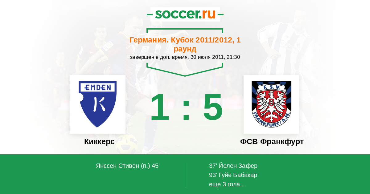 Протокол матча Киккерс против ФСВ Франкфурт