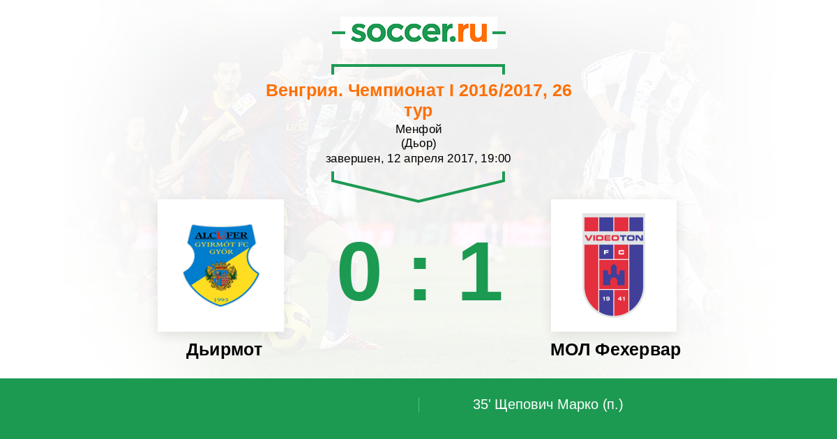 Протокол матча Дьирмот против Видеотон