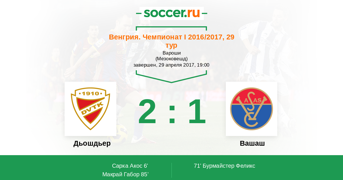 Протокол матча Дьошдьер против Вашаш