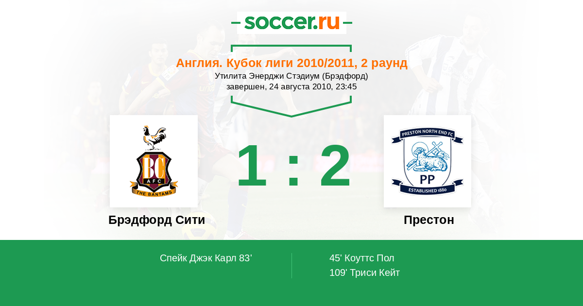 Протокол матча Брэдфорд Сити против Престон