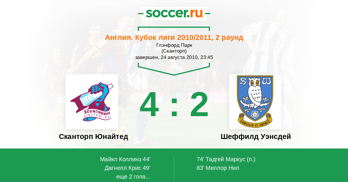 Протокол матча Сканторп Юнайтед против Шеффилд Уэнсдей