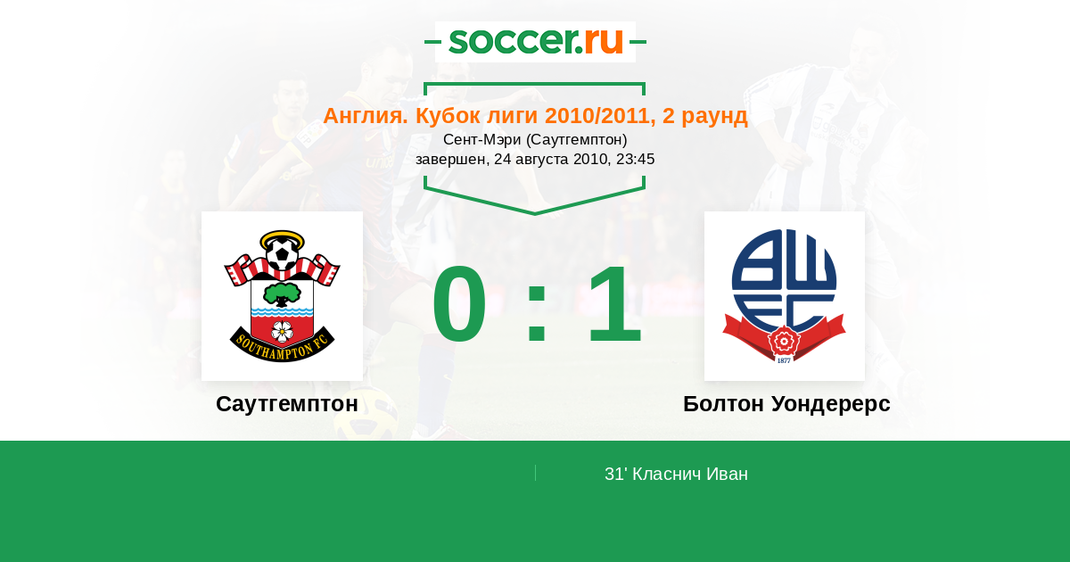 Протокол матча Саутгемптон против Болтон Уондерерс