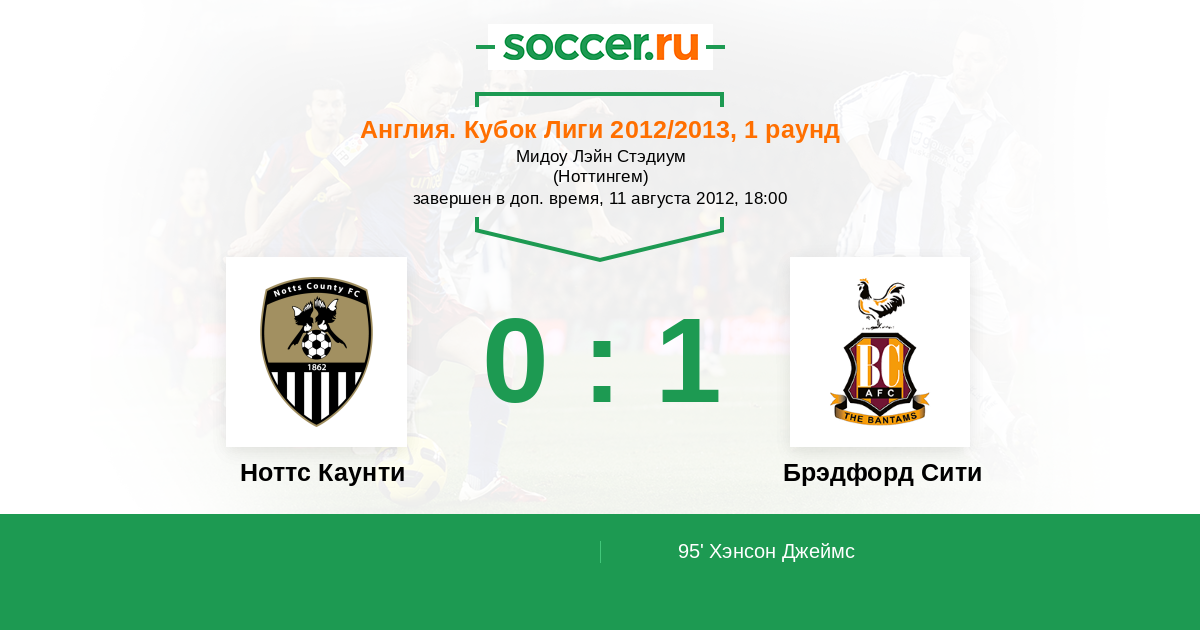 Протокол матча Ноттс Каунти против Брэдфорд Сити