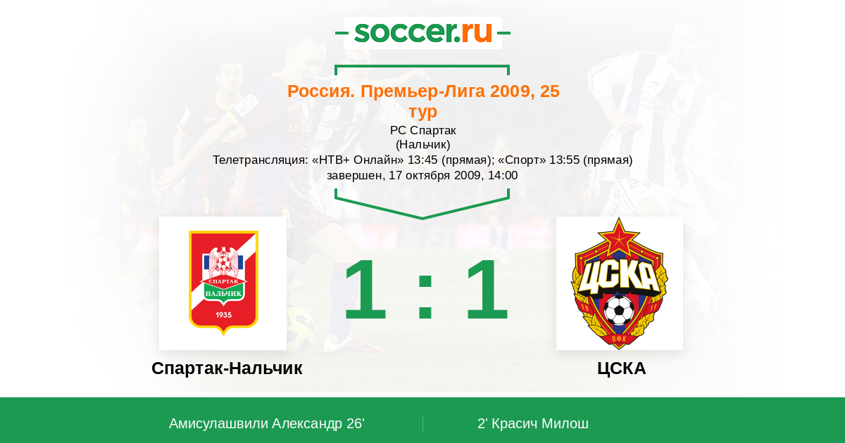 Протокол матча Спартак-Нальчик против ЦСКА
