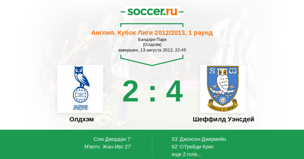 Протокол матча Олдхэм против Шеффилд Уэнсдей