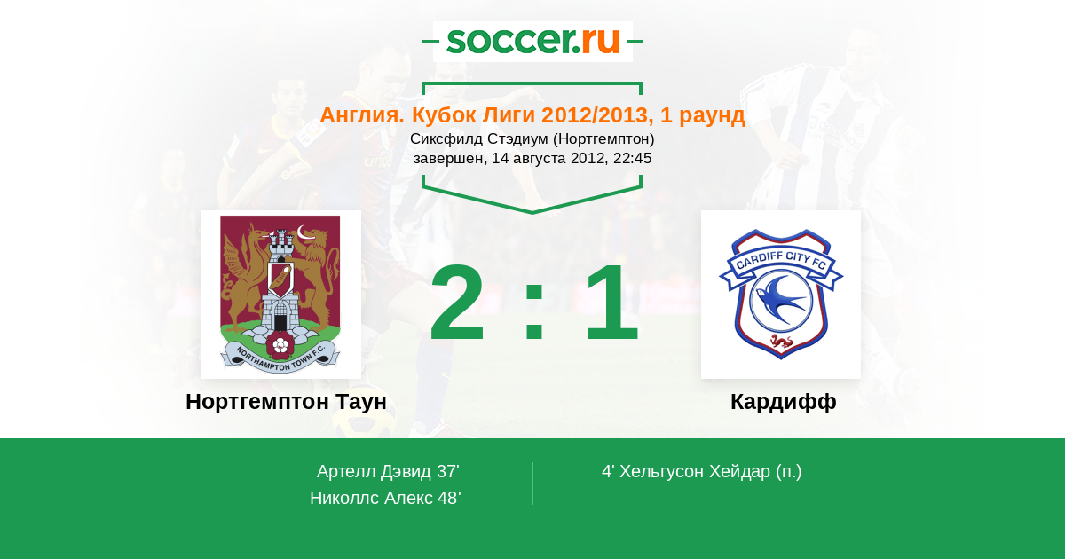 Протокол матча Нортгемптон Таун против Кардифф