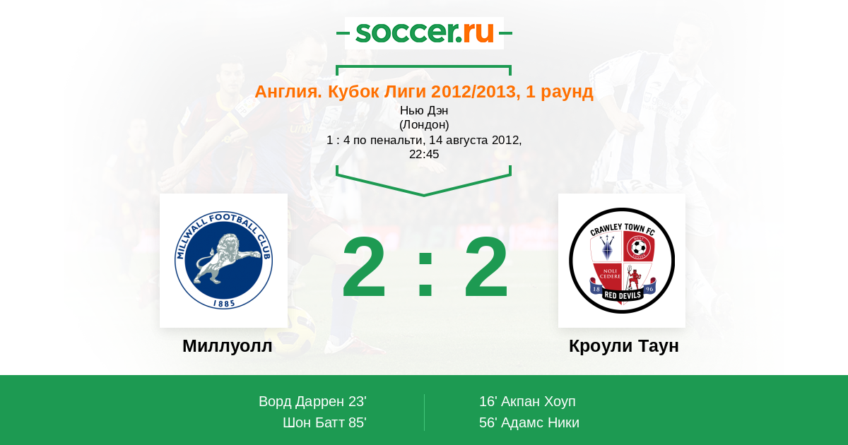 Протокол матча Миллуолл против Кроули Таун