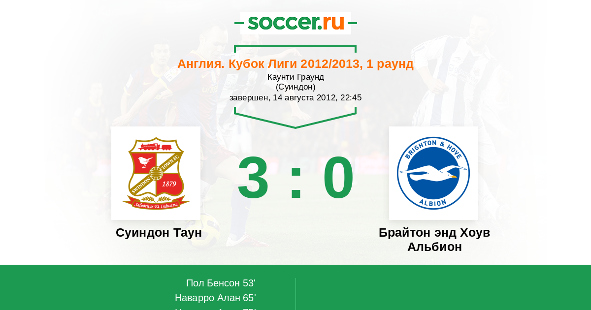 Протокол матча Суиндон Таун против Брайтон энд Хоув Альбион