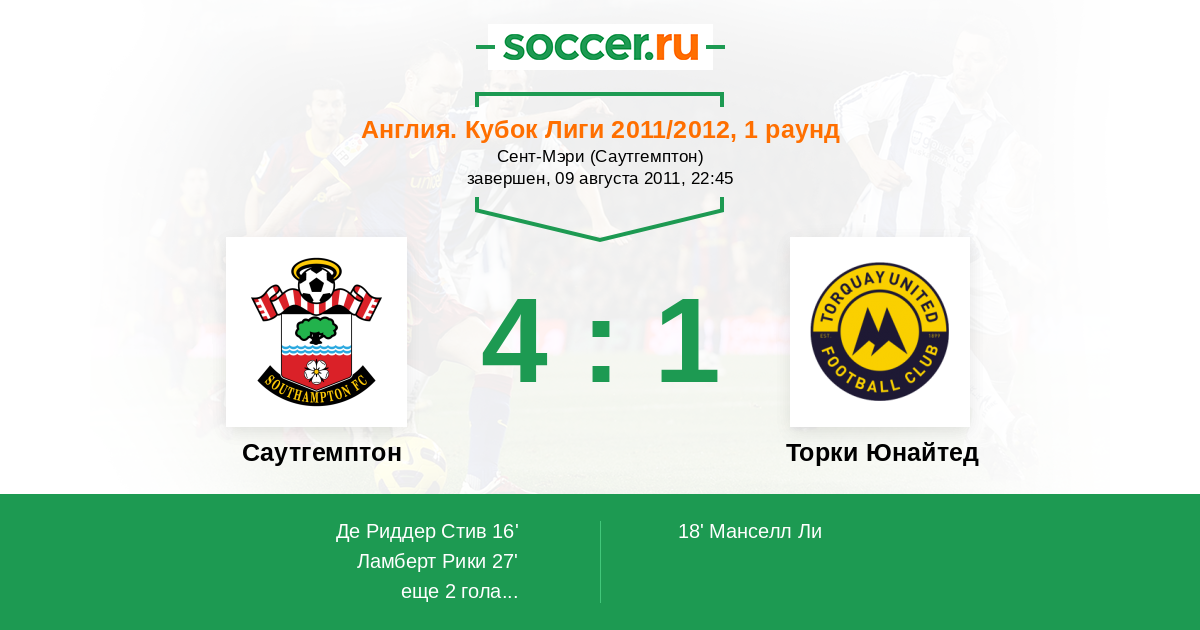 Протокол матча Саутгемптон против Торки Юнайтед