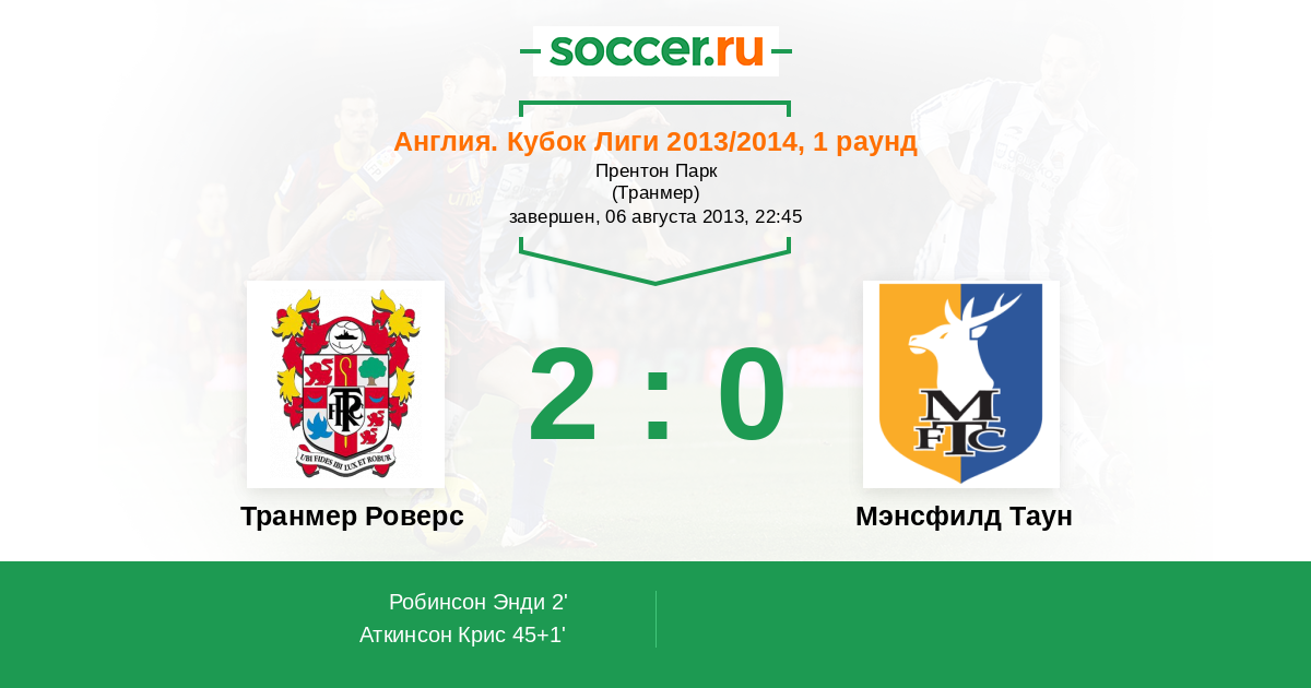 Протокол матча Транмер Роверс против Мэнсфилд Таун