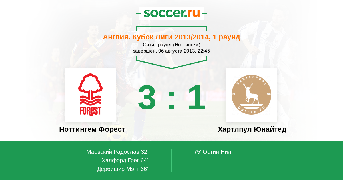 Протокол матча Ноттингем Форест против Хартлпул Юнайтед
