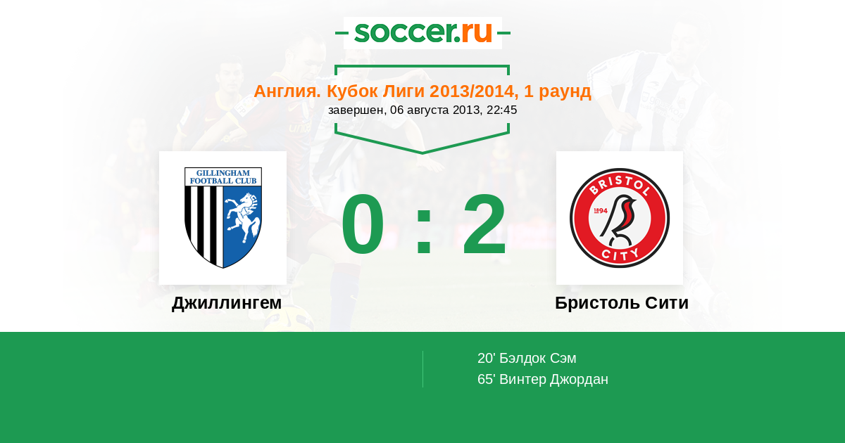 Протокол матча Джиллингем против Бристоль Сити